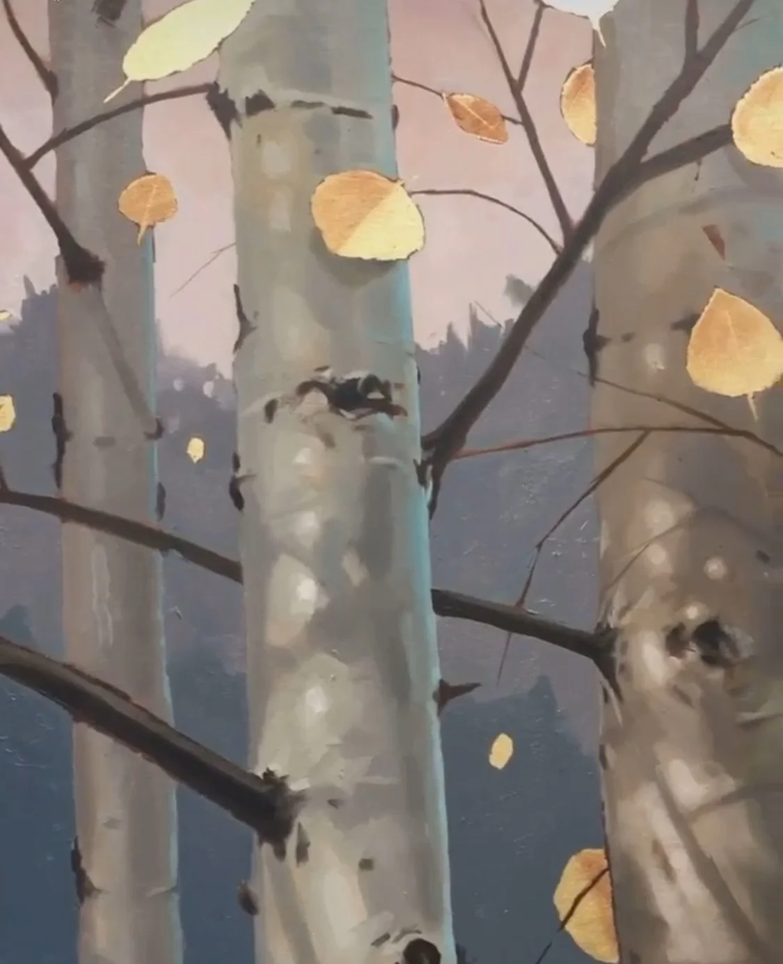 Cool Aspen Eve, Oil and Gold Leaf on Board, 36x48 inches